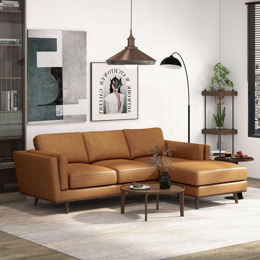 Lore L-Shaped Genuine Leather Sectional In Tan